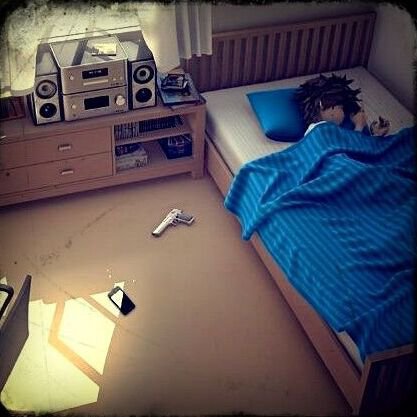 像是等待临死前最后的晚餐一样、各自烦恼着、座在左边最下面的一个人可能承受不了压力、从自己的口袋里拿出一根香烟上、火光点燃的一刹那、