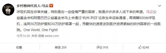 除了商业行为,实际上,很多境内的慈善组织和企业也开始向海外医疗机构和团体捐赠医疗物资。