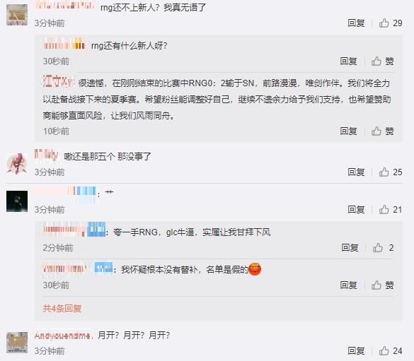 而RNG这次的首发阵容也引发了不少粉丝的不满,很多人质疑为什么还不上新人啊?真的无语了,甚至有粉丝气得直接提前写好了RNG输给SN的文案。