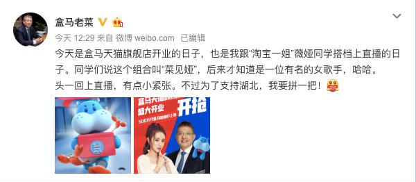 电商直播又出新CP,盒马总裁侯毅(老菜)x薇娅是个什么样的新体验?