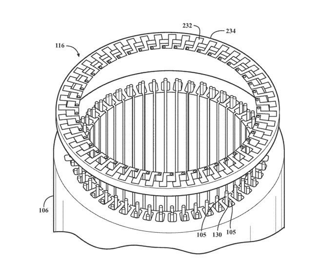 相反,苹果公司的专利集中在电机技术与发动机散热方法的搭配上。专利显示,冷却结构与上部外环表面或下部外环表面中的至少一个处于导热关系,用于接收来自端部转环的热量。
