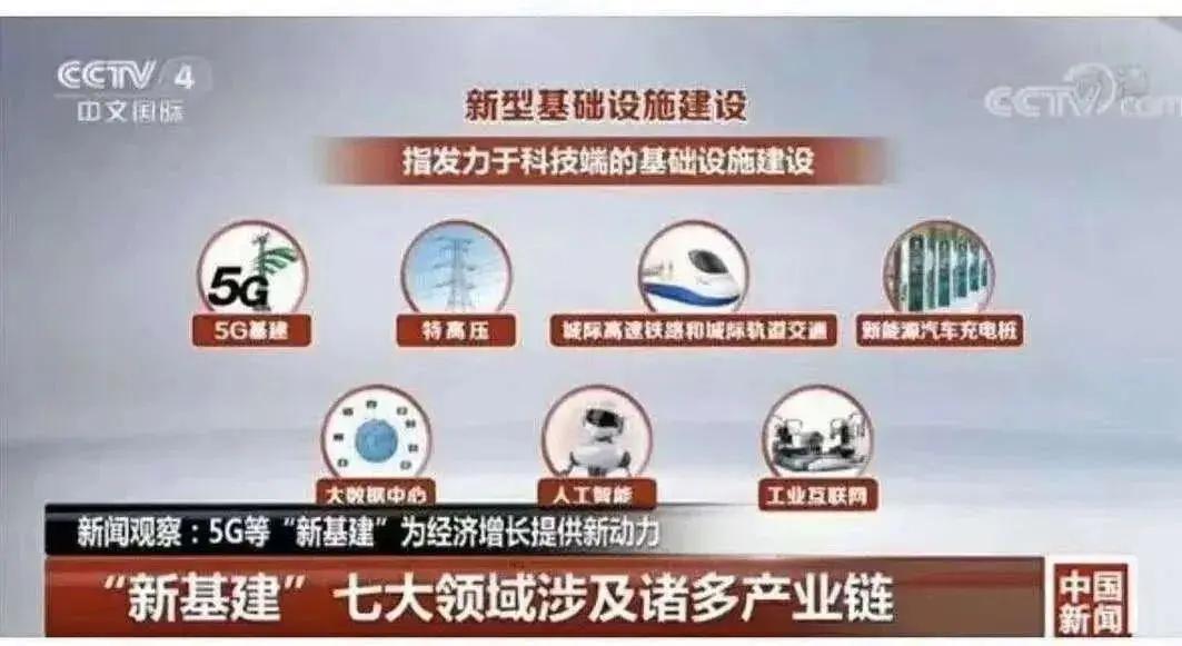 3月4日,中共中央政治局常务委员会召开会议,指出要加快5G网络、数据中心等新型基础设施建设进度。区别于传统“基建”,“新基建”主要发力于科技端,包括5G基站建设、特高压、城际高速铁路和城际轨道交通、新能源汽车充电桩、大数据中心、人工智能和工业互联网七大领域。