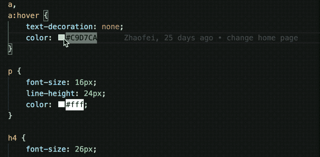 在编写 CSS 时常见的一个需求就是修改元素颜色,在 VS Code 中可以直接使用取色器进行修改。