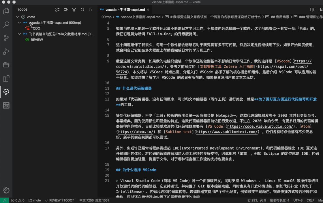 很多人在使用一些笔记工具时都有精确定位的需求得不到满足,即快速找到某个 tag 或者关键词所在的具体位置。VS Code 则可以帮你在所有需要的文档中进行精确定位和跳转。