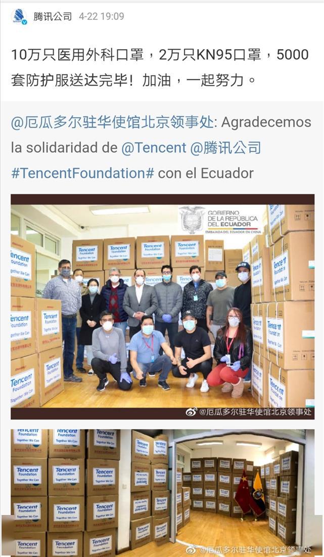 南美国家厄瓜多尔突然暴涨的疫情数据引发关注。腾讯第一时间联合厄瓜多尔驻华大使馆,捐赠12万只口罩与5000套防护服。