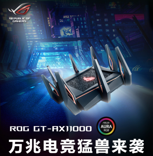 GT-AX11000电竞路由器沿袭了八爪鱼“经典造型,并加入了酷炫的黑金配色,支持新一代802.11ax协议,采用了全球首创的AX三频万兆的配置。其2.4GHz频段传输速率达1148Mbps,而5GHz频段更是高达2.5Gbps传输速率,同时三频并发最高可达11Gbps。