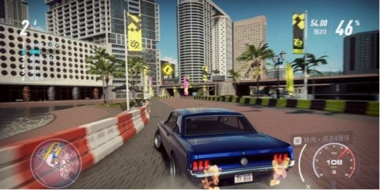 当遇到90度以上的大转弯,速度就会降下来,当速度提升上来后,通过按刹车键完成漂移,且按住刹车键的时间越久漂移的角度越大。