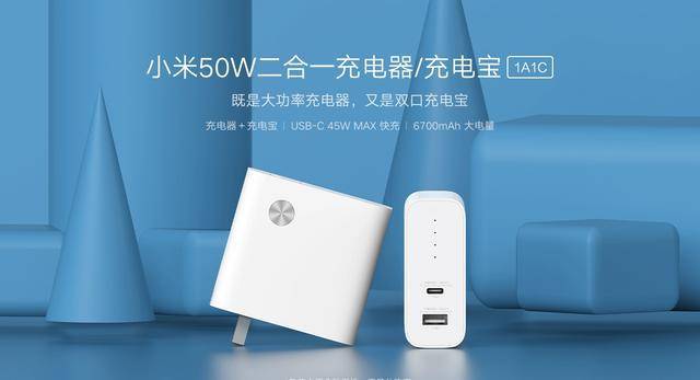 原标题:既是50瓦快充头 又是6700mAh充电宝 小米二合一新品发布:169元