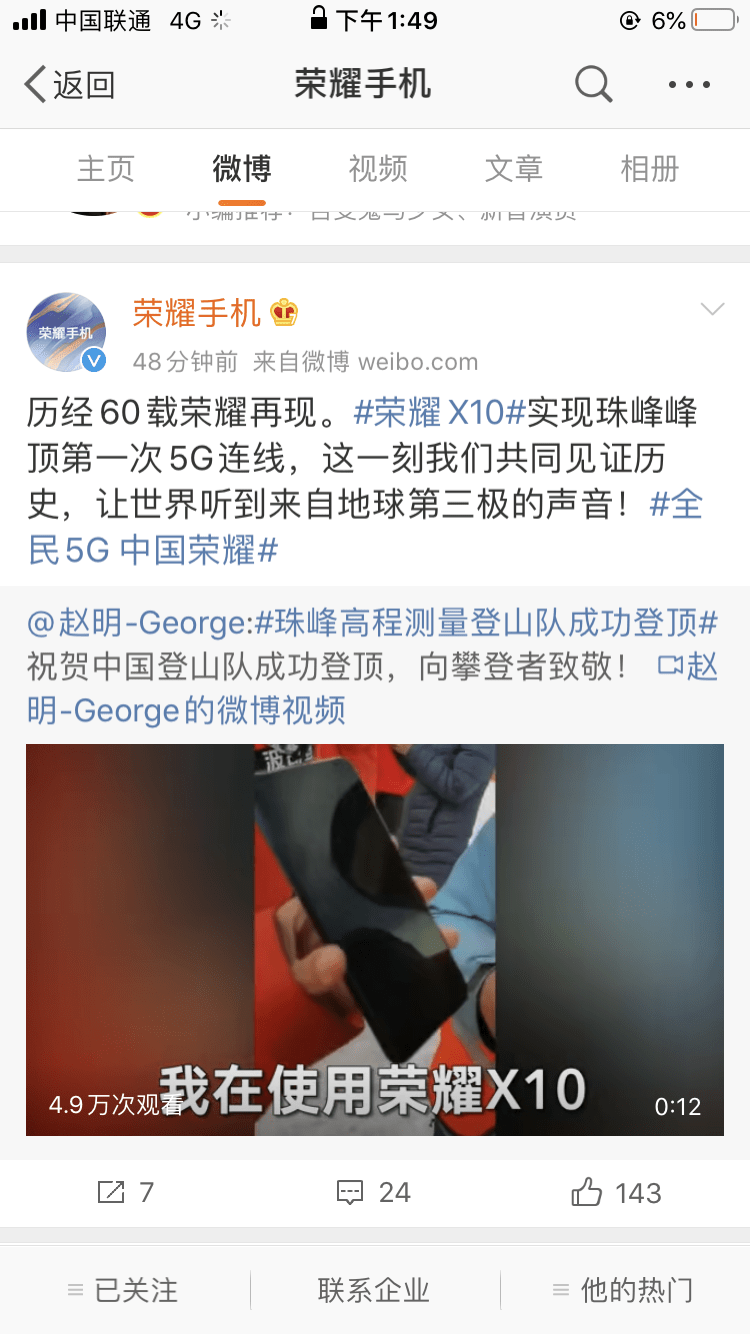 原标题:荣耀X10 8分钟卖出10万台 强大性能助登山队珠峰连线!