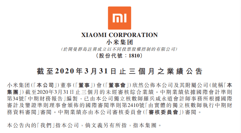 【环球网科技综合报道 记者 郑湘琪】近日,小米集团发布2020年第一季度业绩公告。据财报显示,本季度小米境外市场收入达到248亿元,占总收入的50%,这也是小米首次实现境外收入贡献占比达到一半。