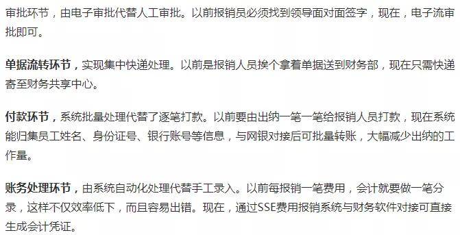 在华为员工报销费用,可能既见不着会计人员,也见不着出纳。华为实现了费用报销IT流程化处理。十年前,智能手机尚未普及,华为就已在互联网上开发了SSE费用报销系统。能上网的地方华为员工就能登录SSE系统填写费用报销单,填写完毕后费用报销单系统会自动提交领导审批。