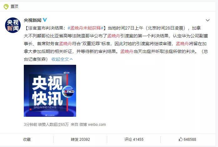 华为公司随后发表声明称,“我们对不列颠哥伦比亚省高等法院的判决表示失望,我们一直相信孟女士是清白的,我们也将继续支持孟女士寻求公正判决和自由。我们希望加拿大的司法体系最终能还孟女士清白。孟女士的律师团队将不懈努力,确保正义得到伸张。”
