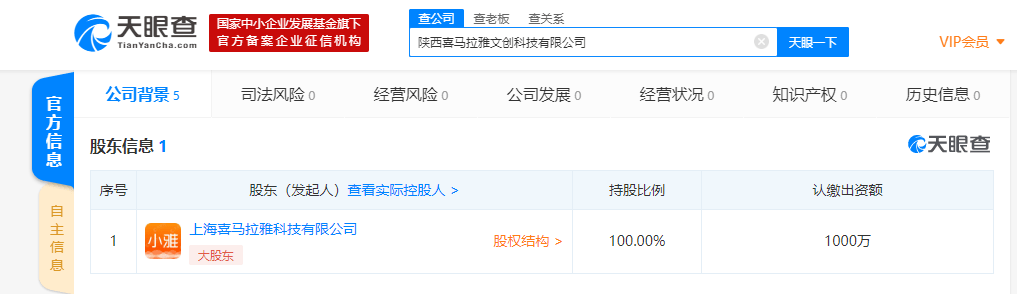原标题:喜马拉雅在陕西成立文创科技公司 注册资本1000万