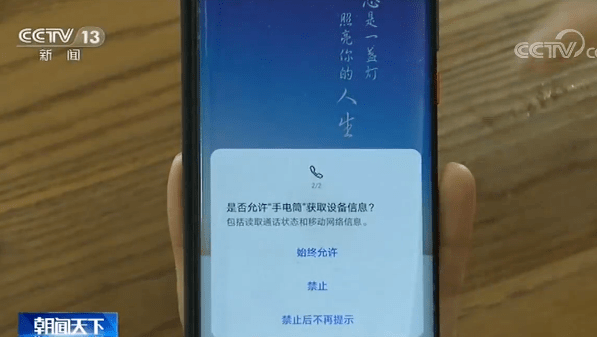 陆峰介绍,比如这款“手电筒”App,用户必须授权位置信息、储存空间和设备信息才能使用,而位置信息和存储空间与手电筒的使用毫无关联,这就涉嫌过度收集用户信息行为。
