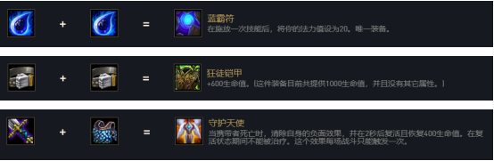永恩释放完首次AOE技能后,技能会发生变化,每次满20点法力值就会对有印记的敌人造成追加伤害,蓝BUFF可以帮助其更快地打出后续伤害。永恩需要在战斗中站稳脚才能打出应有的输出能力,因此坦度尤为重要,狂徒可以大幅度提升生命值,配合浪人羁绊可以获得更高的加成。复活甲也是性价比最强的防御装之一,携带者存活率最大化的同时还能增加容错率。