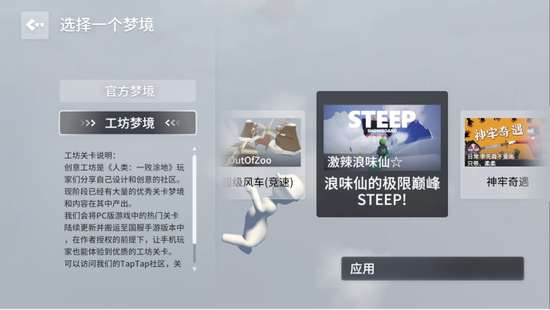 ※《人类跌落梦境》以PC版《人类一败涂地》为基础进行移植,外服沿用了PC版原名而国服则改为《人类跌落梦境》,两者是同一款游戏,仅区服不同。