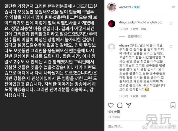 昨日GRF官宣打野Tarzan和辅助Wadid正式离队,此前在打保级赛前,Wadid临时加入战队,但是并没能挽救到GRF,昨日离队后Wadid更新ins更新长文谈及他的心情。
