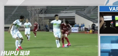 第55分钟,尹锡荣禁区内倒地,裁判观看VAR后示意不是点球。