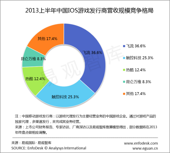 基于苹果移动终端优势,IOS平台以其独特魅力引得众多开发者入驻,聚集了大量的移动游戏产品和用户,同时也真实的为其带来了巨大的经济利益。与安卓相比,更多的需要发行商的市场推广与用户人群到达的能力。而在这一市场中,一直专注于成为优质移动娱乐内容和智能终端用户的最佳渠道的飞流优势明显,独占中国IOS发行市场36.6%的市场份额。以《捕鱼达人》为成功代表作的触控科技同时也占据到25.3%市场份额。热酷、昆仑万维市场份额保持在10%左右。IOS平台格局呈现以飞流为首,触控科技步步跟进的形势,预计短时期内不会出现较大改变。 安卓平台发行商营收格局中,蜂巢科技无异于是最大赢家,其采取多家平台联运方式,最大限度覆盖用户群,为其最大程度的抢占市场份额。在IOS平台强大发行能力的飞流,其在安卓平台的市场拓展也取得长足的进步,占据9.2%的市场份额,发展潜力巨大。 不管是产品、推广还是渠道,大家很快会像页游玩法一样,大量花钱买用户,可能一下子成本增加很多,门槛也就越来越高。随着大型公司的进入,拿钱砸渠道的时代也就随之到来,这也将变成渠道为王、流量为王的时代。渠道的新增带动收入的上涨。同时手游的短生命期也注定了要赚快钱,手游的用户没有形成平台,最后也将变成给渠道打工,谁有流量,谁就有收入,谁就是爆款。 然而今天的渠道非常分散,尤其在安卓平台上,很难说哪一家是独树一帜,绝对领先。这对于开发者和发行商来说是一个最好的时代。移动游戏平台和渠道将面临着不可阻挡的大变局。而最好的解决方法就是在争抢优势CP的资源的同时,加强彼此间的合作关系。开发商就像是铺路者,帮开发商去铺这些游戏的渠道,而合作是双方利益实现的关键。发行商助力于手游厂商放大收益,专业化分工,使其专注于游戏开发与创新,发行商负责推广、计费、运营、客服等全套“游戏周边”服务。在这渠道为王的时代,发行将改变着市场格局。编后语:关于《易观报告解读 发行改变手游市场格局》关于知识就介绍到这里,希望本站内容能让您有所收获,如有疑问可跟帖留言,值班小编第一时间回复。 下一篇内容是有关《明日内测《七龙Online》重磅活动抢先看》,感兴趣的同学可以点击进去看看。