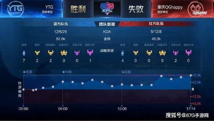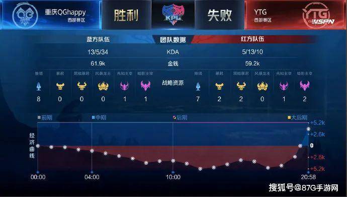后期YTG带着暴君buff先杀末将的安琪拉然后压水晶,结果反被刺痛的橘右京和fly的马超打了个0换3,QG顺势推下了YTG的高地塔。在最后的风暴龙王处,QG率先击杀对面C位,白起一个嘲讽直接白给,YTG就剩下一条娃娃鱼完全没有守塔能力,QG完美收官!