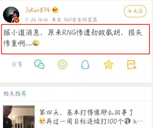 2020年的春季赛,RNG可以用高开低走来形容,德杯夺冠,BETTY与小龙堡赛季初发挥稳定,让粉丝们看到了希望。然而在春季赛后半段,RNG的状态却开始不稳,虎狼龙三兄弟轮番拉胯,小明晋升为"冥王",最终RNG止步季后赛八强,创下近几年最差战绩。在转会期开始后,圣枪哥能否加盟RNG也牵动着无数人的心。然而就在5月26日下午,这件事有个最新的进展,而爆料人是LPL元老人物JOKER。