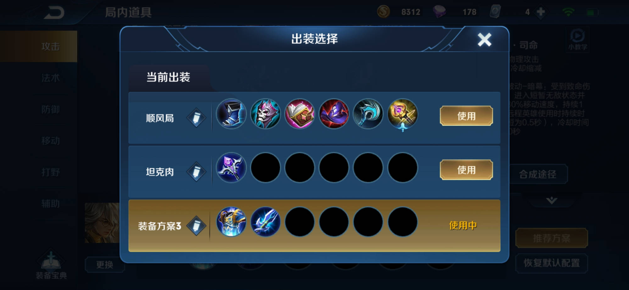 后期对面太肉(虚无法杖)出这个增加法术穿透效果起到一个输出最大化(噬神之书)这个装备也不错,前期续航能力让我们强一些,张良血量比较脆,(血族之书 )先做小件装备,在做到第5件装备的时候合成大件装备(博学者之怒)增加法术强度法师神装(冰霜法杖)黑科技出装的一个装备主要拿这个装备血量提升,加上技能使用附带减速效果,你在用一技能制作墙体的时候,让敌方受到减速效果让我们能快速的逃跑。(辉月)金身效果为大家提供一个短暂的续命,这个装备我推荐大家在做第三个的时候就把它给做出来,或者再做第四件装备时候就把它做出来,不要最后一个做的,因为最后一个反而觉得他没有用了。等做到最后的话,出复活甲跟名刀互切的话,也比做一个金身好