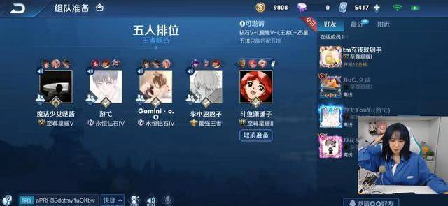 在直播首秀当天,五位来自《王者荣耀》的国服最强男团直接安排,分别为冠军级教练gemini、国服花木兰骚易、前职业选手国服安琪拉托米、国服打野李知恩、国服韩信游弋。可以说这一波安排得十分巧妙,首先gemini教练负责开场banpick与战斗指挥,边路抗压由骚易顶上,中单有拖米,打野李知恩,程潇负责射手位,游戈在暗中保护。