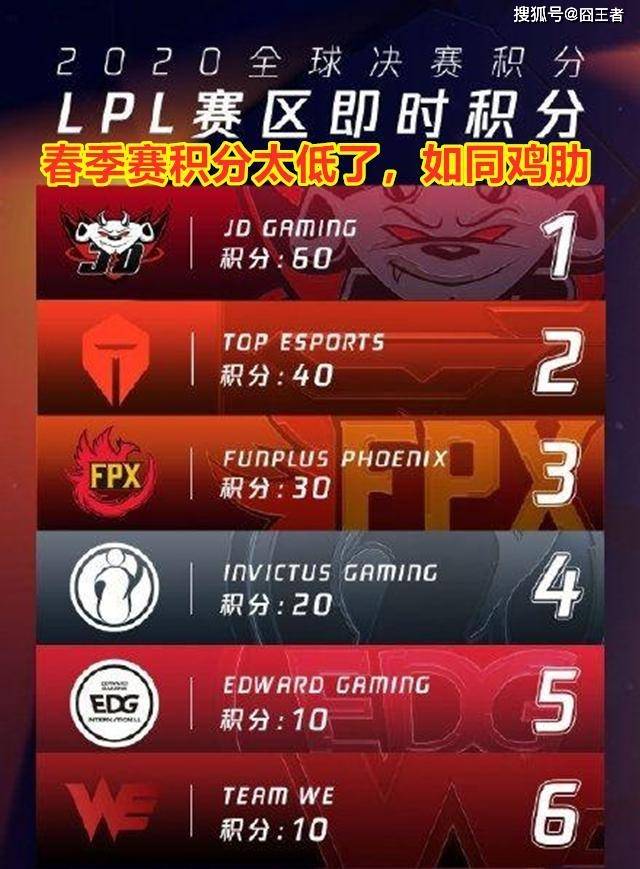 正如囧王者在上面的分析,由于春季赛的积分大幅度降低,导致了S10春季赛四大天王并不能像以往春季赛冠军一样,手握大量积分,只要夏季赛不太拉垮就可以以积分来保送S赛(S9赛季的剧本由于太过于完美,我们略过不谈)。