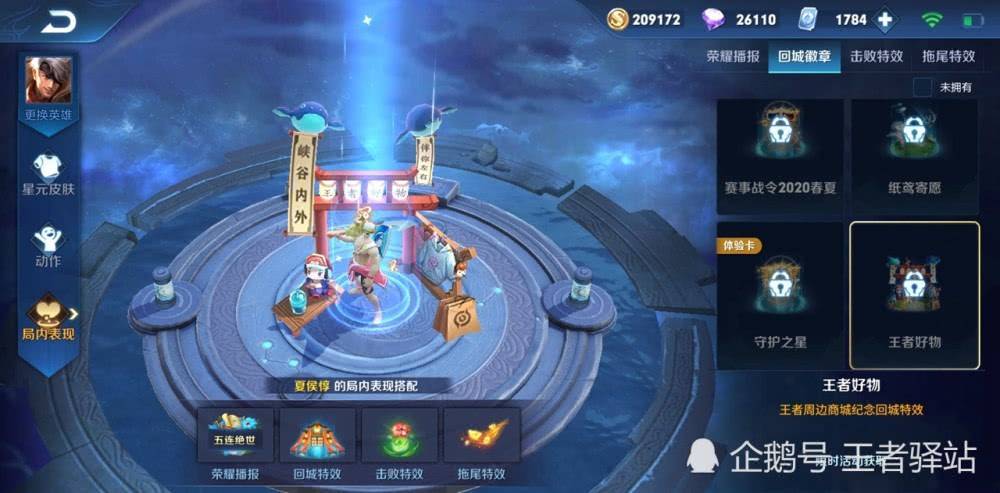 最后王者峡谷在本周新增了一个全新回城特效—王者好物,是官方为王者周边商城推出的专属回城特效,局内效果类似摆摊,悬挂着四个“王者好物”灯笼,并加入了电玩小子玩偶、水壶、衣服等元素,两只鲲携带“峡谷内外,伴你左右”的条幅环绕飞行是一大亮点,该特效通过参与限时活动获得,感兴趣的玩家可以期待一下!