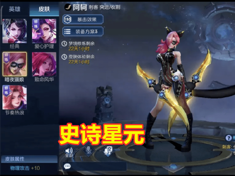 在选择阿轲之后,除了阿轲的限时皮肤致命芳华之外全部都是可以使用的,其中最完美的就是节奏热浪的史诗品质星元皮肤了,在这款皮肤之下的阿轲特效还是很棒的,最值得开启的就是貂蝉了,很多玩家本是想要使用貂蝉的仲夏夜之梦的皮肤了,但是开启之后,貂蝉的皮肤中这款仲夏夜之梦不能用,反而KPL限定的逐梦之音却能够使用!
