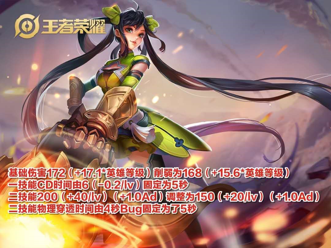 提到了伽罗。那就要说说他的好搭档明世隐了,明世隐的1技能给队友增加的移速从15%调整为5%,升级后会有1%的加成,也就是前期给队友的加速移动效果削弱了,后期会慢慢叠加。不过1技能触碰敌人的额外伤害比例从50%提升到了100%。虽然看似厉害,实则也是鸡肋,后期参团他也不会去抗伤害,也只是辅助射手在后面打输出。香香这次的调整算是比较大的了,基础攻击的伤害削弱,1技能冷却时间固定为五秒,2技能伤害降低50,并且升级加成也降低了20,值得一提的是二技能的真伤bug也是修复了,