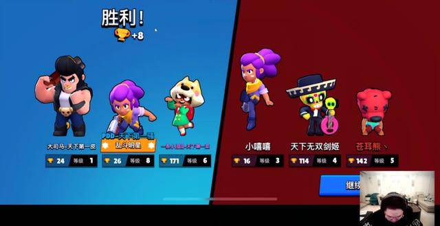 6月11日晚上10点左右,马屁团正式在《荒野乱斗》里集结,但没想到开局就出现问题,PDD的网络延迟非常明显,大司马和小团团一切正常,结果就出现了开局2V3的场景。本以为首秀的第一场会直接惨败,但在PDD及时更换网络后居然开始各种秀操作,虽然是最晚入场的那位,但最终的战绩却反超了大司马和小团团,成功拿下首个MVP,直播间也是瞬间刷起了各种666的弹幕。