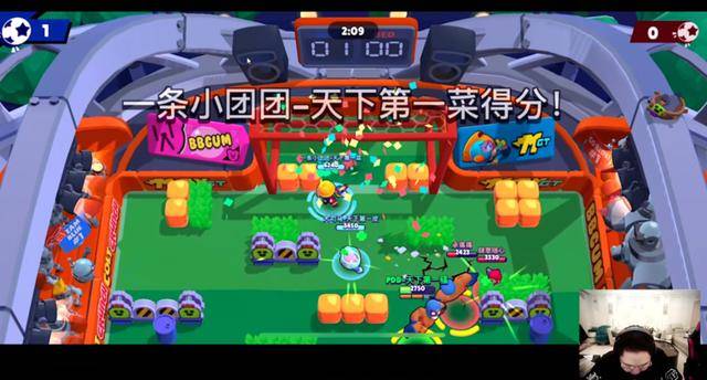 根据我观察了多局后发现,大司马喜欢莽夫公牛和拳王普里奥,PDD就很钟爱开局就送的雪莉,拿喷子秒人非常舒服,而小团团一直是走的可爱风,尝试了妮塔、潘妮后又认准了钻地的雅琪。这三个人不局限于常规的3V3宝石争霸,紧接着又到了乱斗足球里开始“秀球技”。PDD似乎是认准了MVP的名号,让大司马和小团团尽管去踢球,他来称霸全场,结果大屏幕上就经常能够看到“一条小团团-天下第一菜得分”,不得不说,这波操作和宣传属实到位,起码是能够让更多人知道小团团的“实力”。
