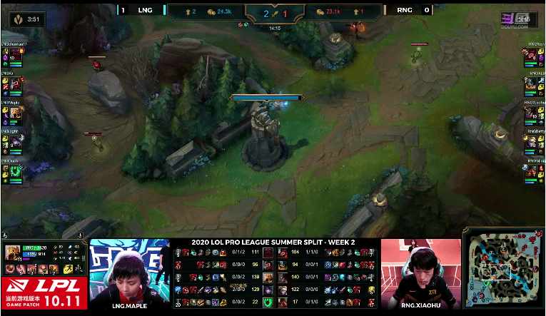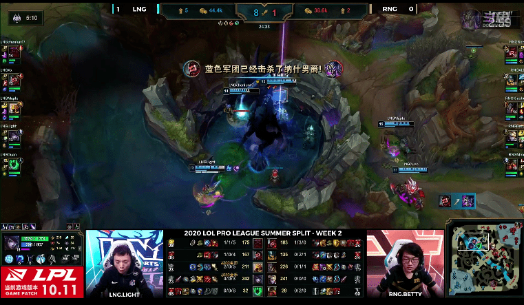双方BO3第二局开始,蓝色方LNG,红色方RNG。