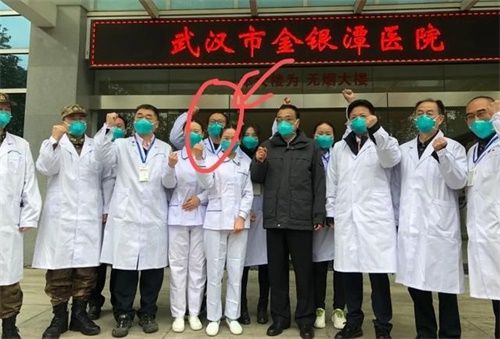 酷博与总理在金银潭医院门口合影