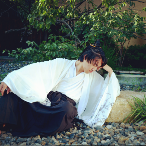 劝君堂上,何以跪坐在桌前,一身白袍,纤尘不染,到膝的长发自然的铺散在地上,若有若无的烟雾中,静静的品酌着玉杯中的琼浆。一杯饮尽,眼中闪过的却是一丝哀伤:”初见时,丰神如玉,再见时,鬓发皑皑,可叹岁月蹉跎啊!“