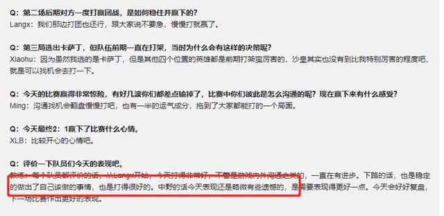 在赢得胜利之后,RNG接受了赛后采访,教练mata声称,这次的比赛整体发挥不错,下路发挥非常稳定,但中野表现略微有些遗憾。这一点mata倒没遮遮掩掩,中路的日常拉胯令人窒息,打野小龙堡的失误也影响了比赛走向,总而言之,这是一场不值得高兴的胜利。然而我们也要说的是,作为教练的mata,他的bp也一直频频出现迷之操作,这支战队现在由上而下都是极其拧巴的。上路玩特定英雄时发挥尚可,然而让他C也是不现实的,打野新人,中路神经刀而且日常不敢站出来,下路反而又成了唯一滴神,不用新人完全就看不出有什么活力了。