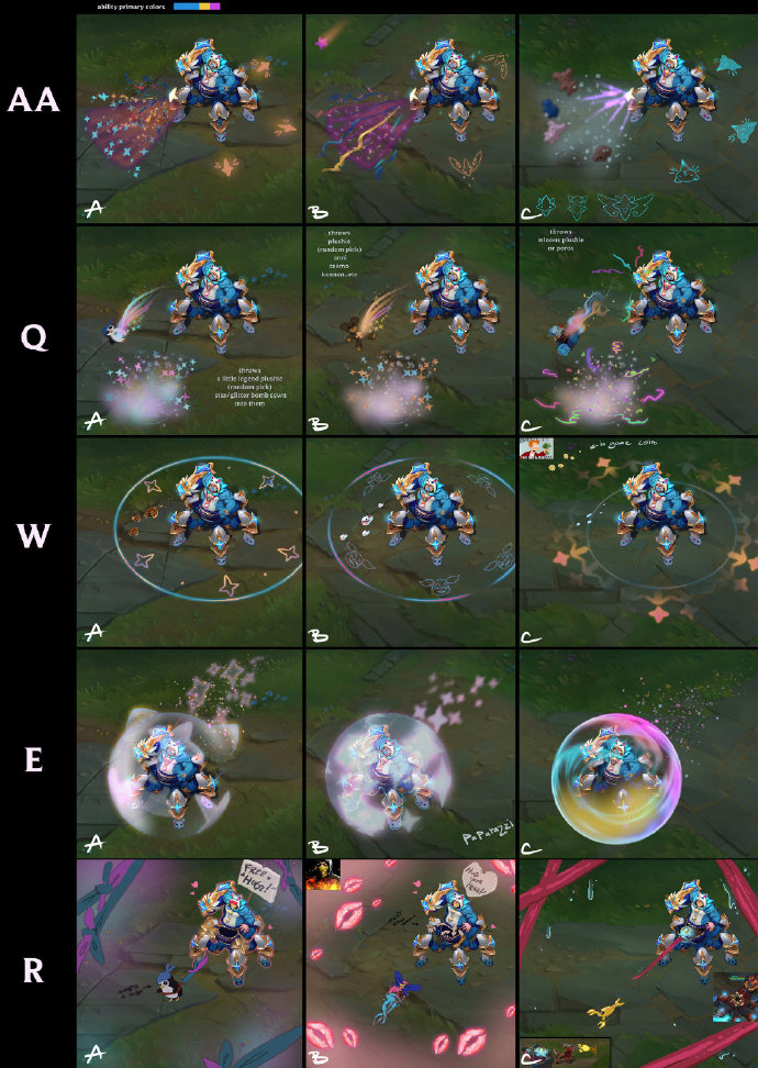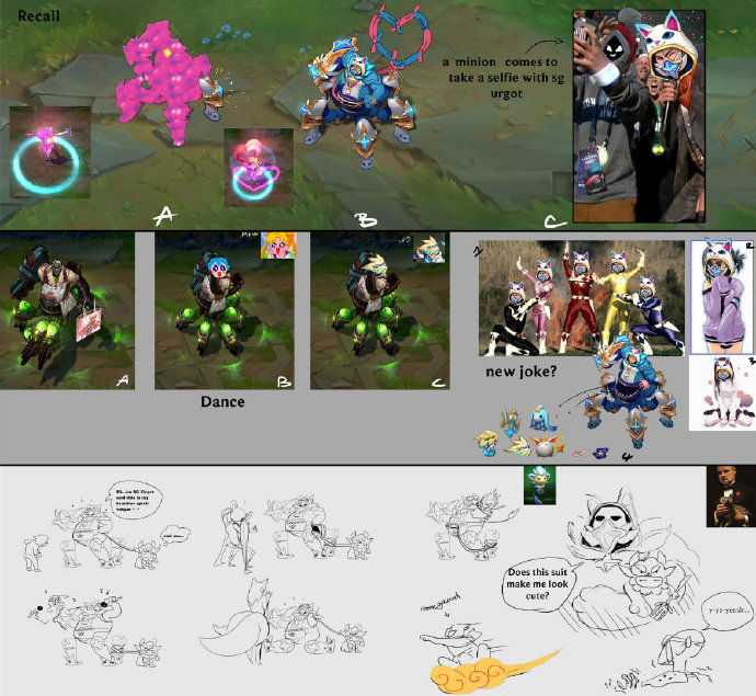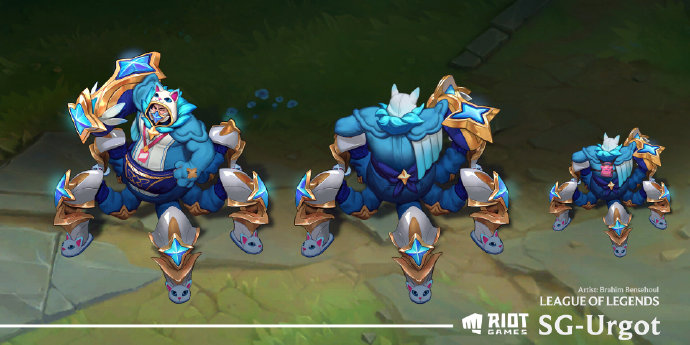 除了以上多元素的融合,设计师绘制的星守厄加特皮肤的初稿是带有翅膀,厄加特脸型有点像鸭子,后来也是经过多次改动,才有了如今帅气的厄加特形象。