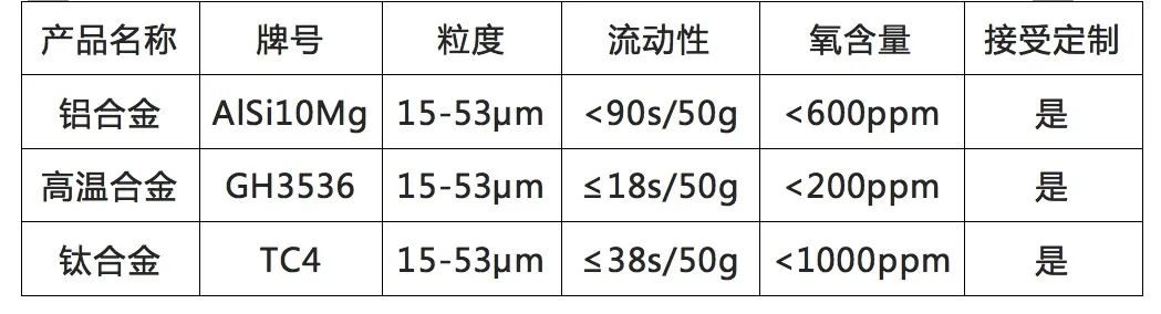2、高品质金属粉末:铝合金、高温合金、钛合金(可接受定制)