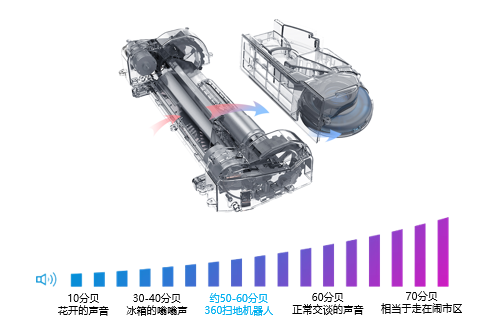 X90具有大吸力、低噪音特点,噪音明显低于同类竞品,最低噪音仅55分贝,相当于台式电脑主机运行的声音,不会影响看电视。它是怎么做到这一点的呢?其内置了二重消音风道专利静音技术,在保证大吸力同时,最大程度地降低了噪音。