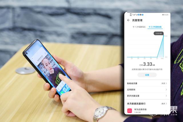 智慧双卡的另外一个优势就是接电话不断网,SIM1卡在使用5G信号上传文件时,接听SIM2卡来电,SIM1卡5G数据不会断流,对比其他手机接听电话时,数据网络不可用,荣耀30S可以一边处理数据,一边接听重要来电,数据、通话两不误。