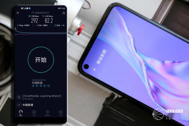 测试5G的网速我们首先使用Speedtest直接测试手机的上行、下行网速如何,测试均为室内环境下进行,测试得到的结果为:下行速率峰值达到292Mbps,上行速度达到82.2Mbps,同一位置我们测试了相同的其他品牌手机的5G网速,荣耀30S的5G速度优势明显。