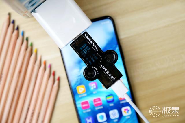 使用电流计实测手机瞬时充电功率为18W,在熄屏状态时,功率有一定的提升提升至24W左右,最大功率是44W。
