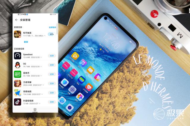 手机采用了一块4000mAh大电池,支持最大功率40W的超级快充,让手机的续航体验得到升级,配合7nm工艺制程的麒麟820芯片功耗控制,手机的续航时间得到了不小的提升。