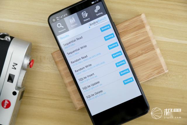 针对芯片的运算能力测试后,我们再使用AndroBench来测试手机的闪存读写性能如何,测试成绩为: