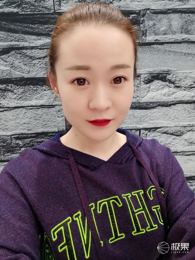 最后我们来说说前置镜头,前置镜头是一颗1600万像素的AI美拍镜头,支持亮眼美颜算法,拍出的自拍照片人眼睛更明亮,眼睛亮了,整张照片就活了起来,我们来看自拍样张。