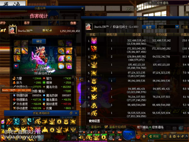 不过CEO第一红眼体验卡要到期了,旭旭宝宝经过十几天刷深渊和从小号中跨界过来装备,终于将红眼一套95版本毕业装备全部刻印成100级装备完成毕业。因为没有神话,旭旭宝宝刻印的是地狱5件+军神3件+大恍惚3件这样的搭配,站街力量面板达到11104,非常恐怖!