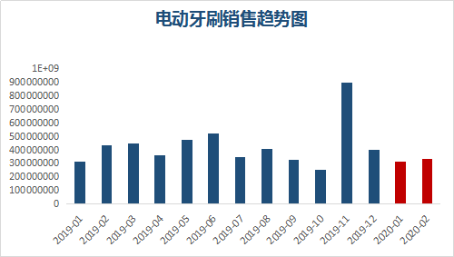 • 2020年2月,成人电动牙刷销售额月同比下降26%,儿童电动牙刷销售额月同比增加43%。