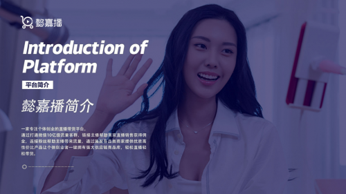 在,懿嘉播的官方网站里看到懿嘉播不只是一个平台,更是从供应链货品资源、从直播带货技能、直播团队组建引流等方面为用主播赋能,提供国内外精选品牌、爆品直供 让主播坐拥全球资源,解决发货仓储、客服、美工等问题,同时还有专门市场扶持部门为创业人提供全方面创业扶持,甚至0投资创办公司成为平台的服务商。