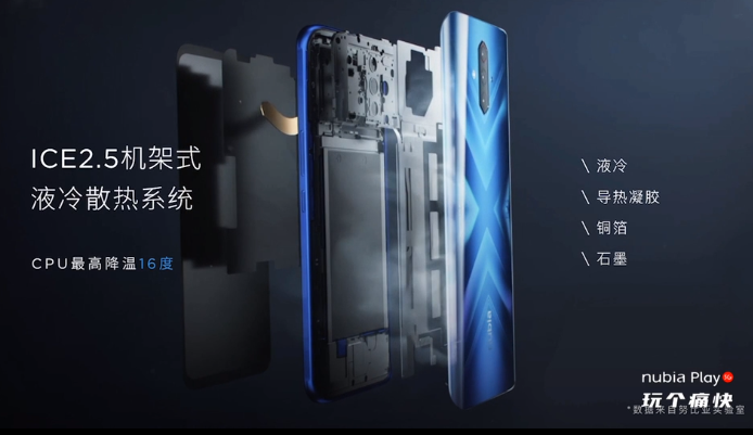 不光如此,努比亚Play更是搭载了旗舰级ICE2.5机架式液冷散热系统。长达61mm的液冷散热铜管装置,可使CPU始终保持低温运转,令核心性能澎湃且稳定输出。